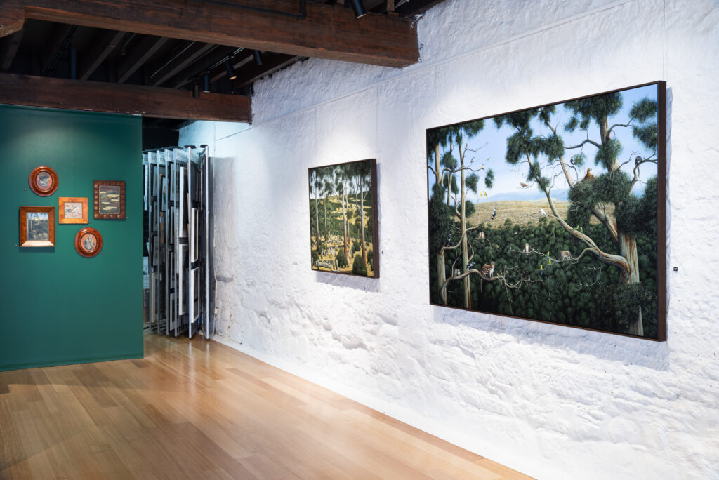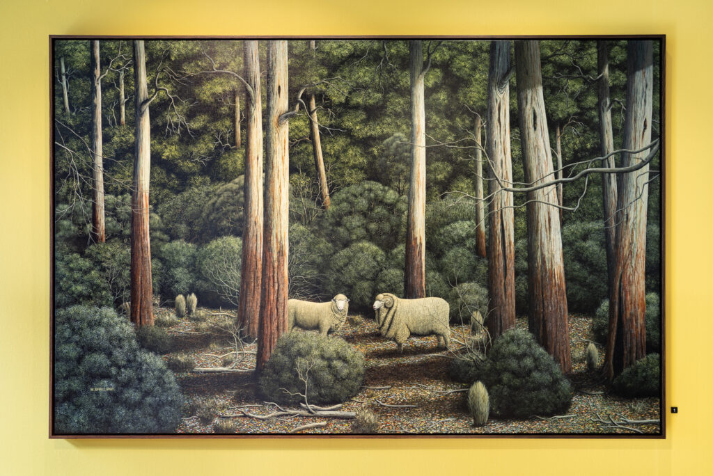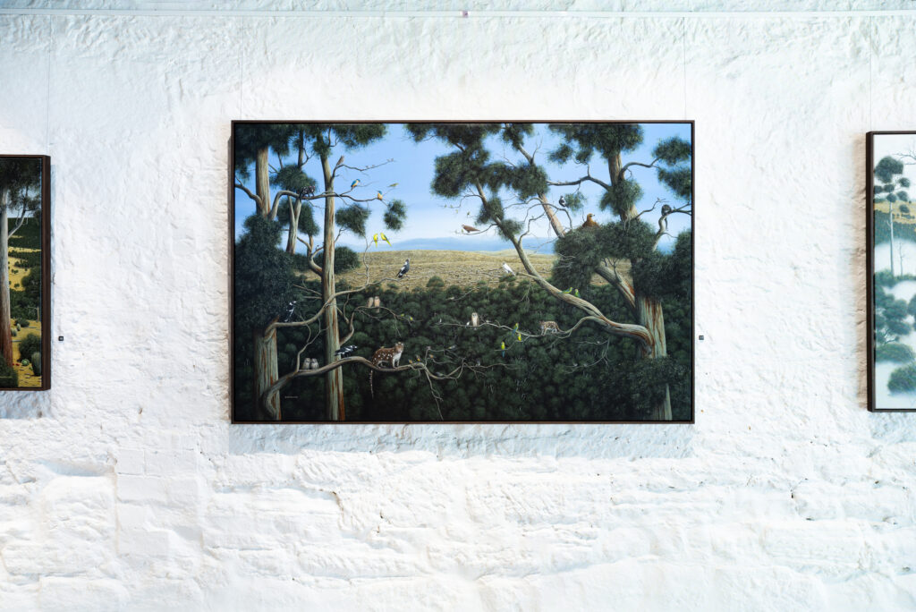 acrylic on Australian cedar panel in a Colonial musk and cedar frame.