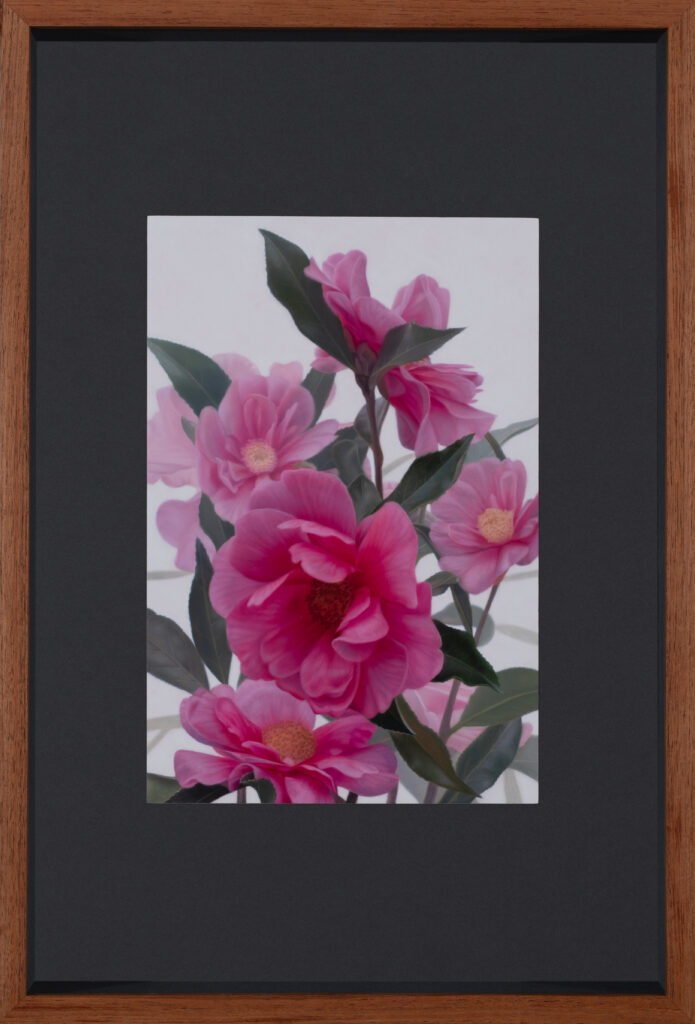 This is brilliantly executed in his largest work, Magnolias in the Mist. A bunch of beautiful white magnolias start out sharply in focus before disappearing into the mist. “This style adds a new softness. I want the person standing in front of my paintings to be engulfed by a peace and tranquillity.”