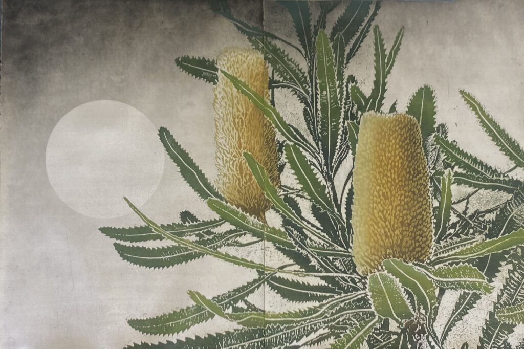 Jonathan is excited about this exhibition, which is an evolution of his previous works, especially print-making: “I haven’t made any new prints in years, and this collection has a different feel. More drama perhaps?” Above all, this is a joyful collection. A homage to natural Tasmania. Pure bliss.